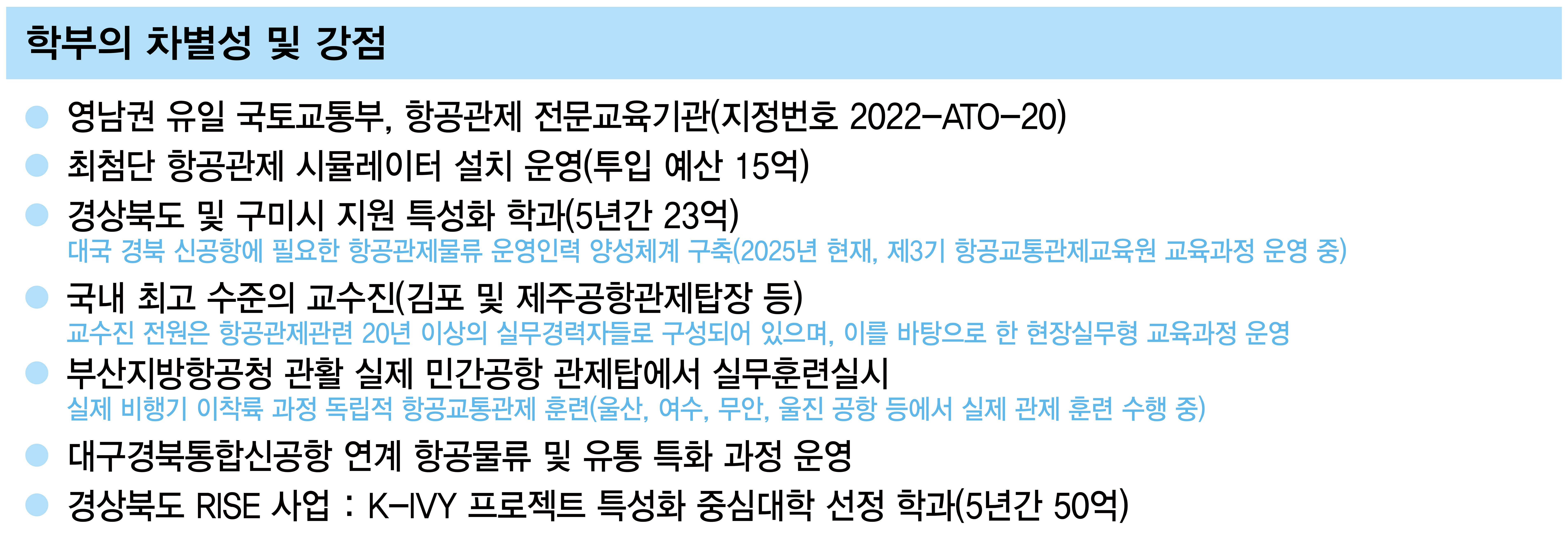 경운대학교 항공관제물류학부 신입생 및 재학생 여러분께