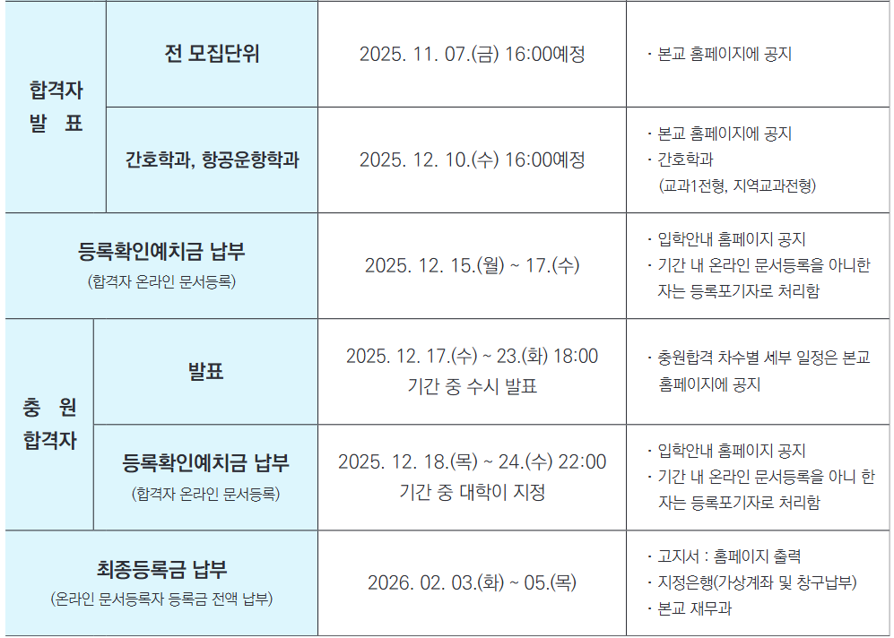 2026 수시모집 합격자 발표일 [11월 7일 16:00예정]