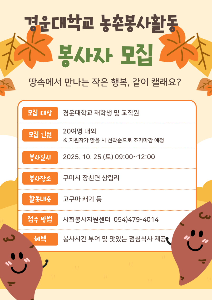 2025년 경운대학교 농촌봉사활동 봉사자 모집안내