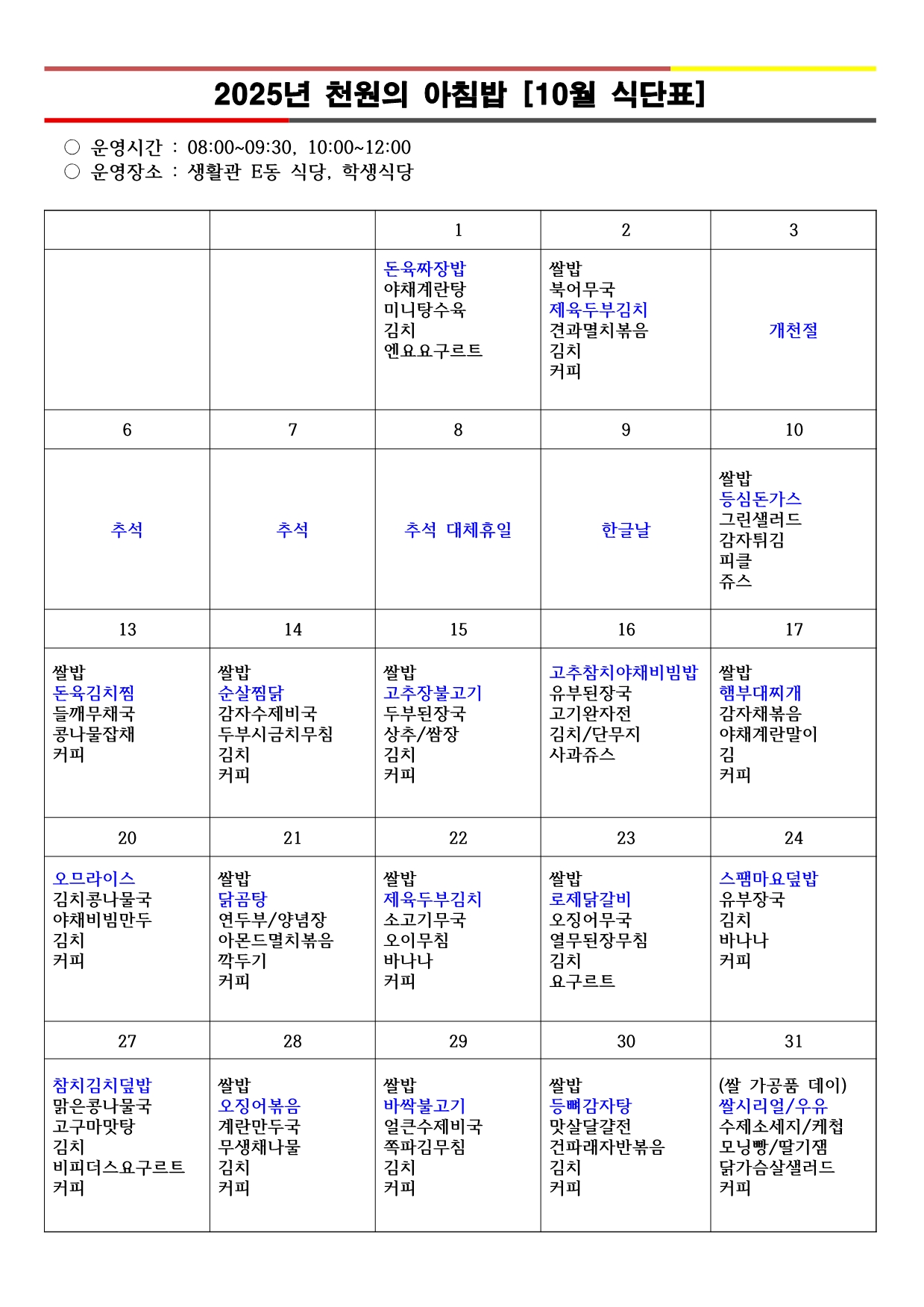 경운대학교 메뉴