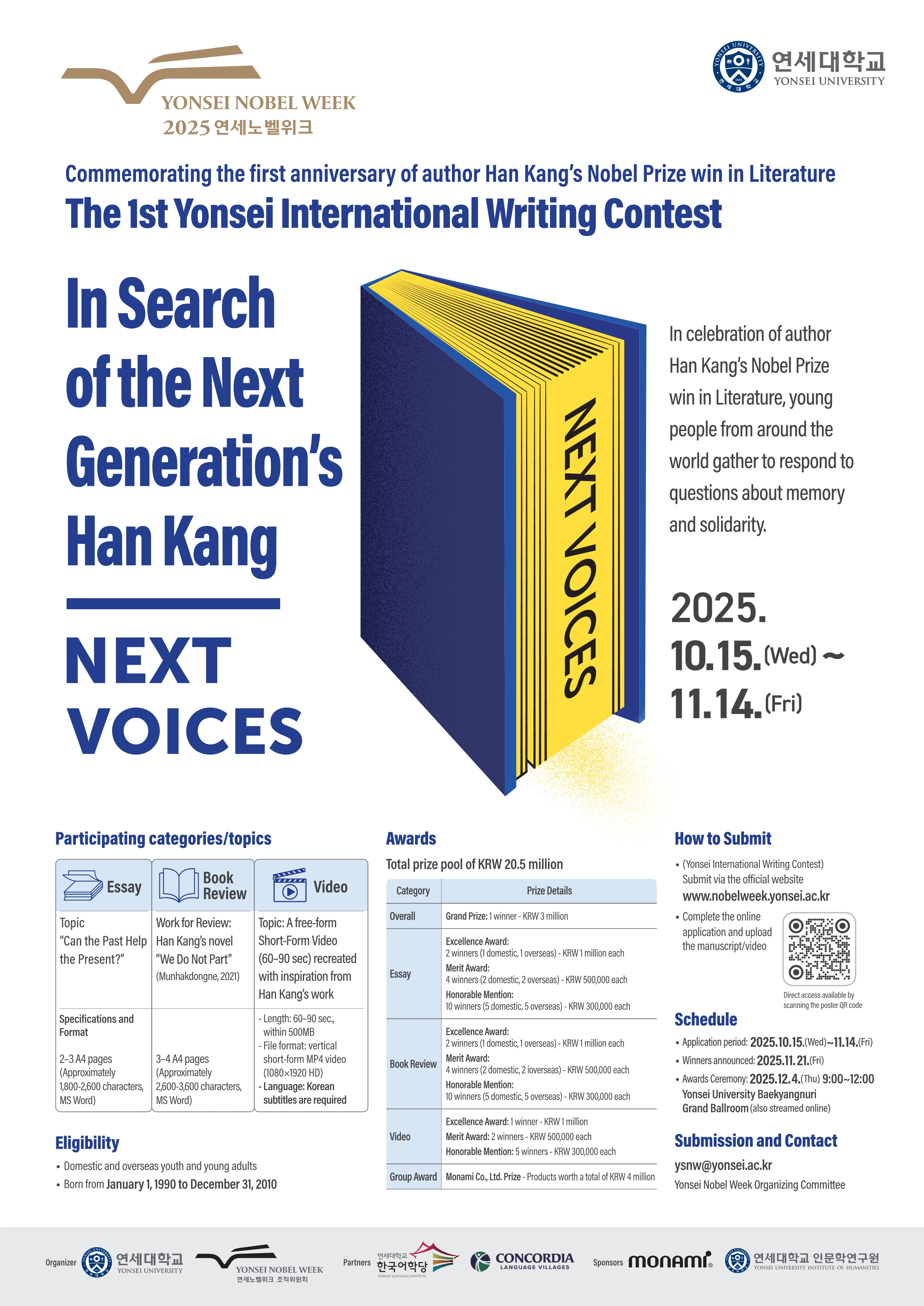 [연세대학교] 제1회 연세국제백일장 "NEXT VOICES"안내
