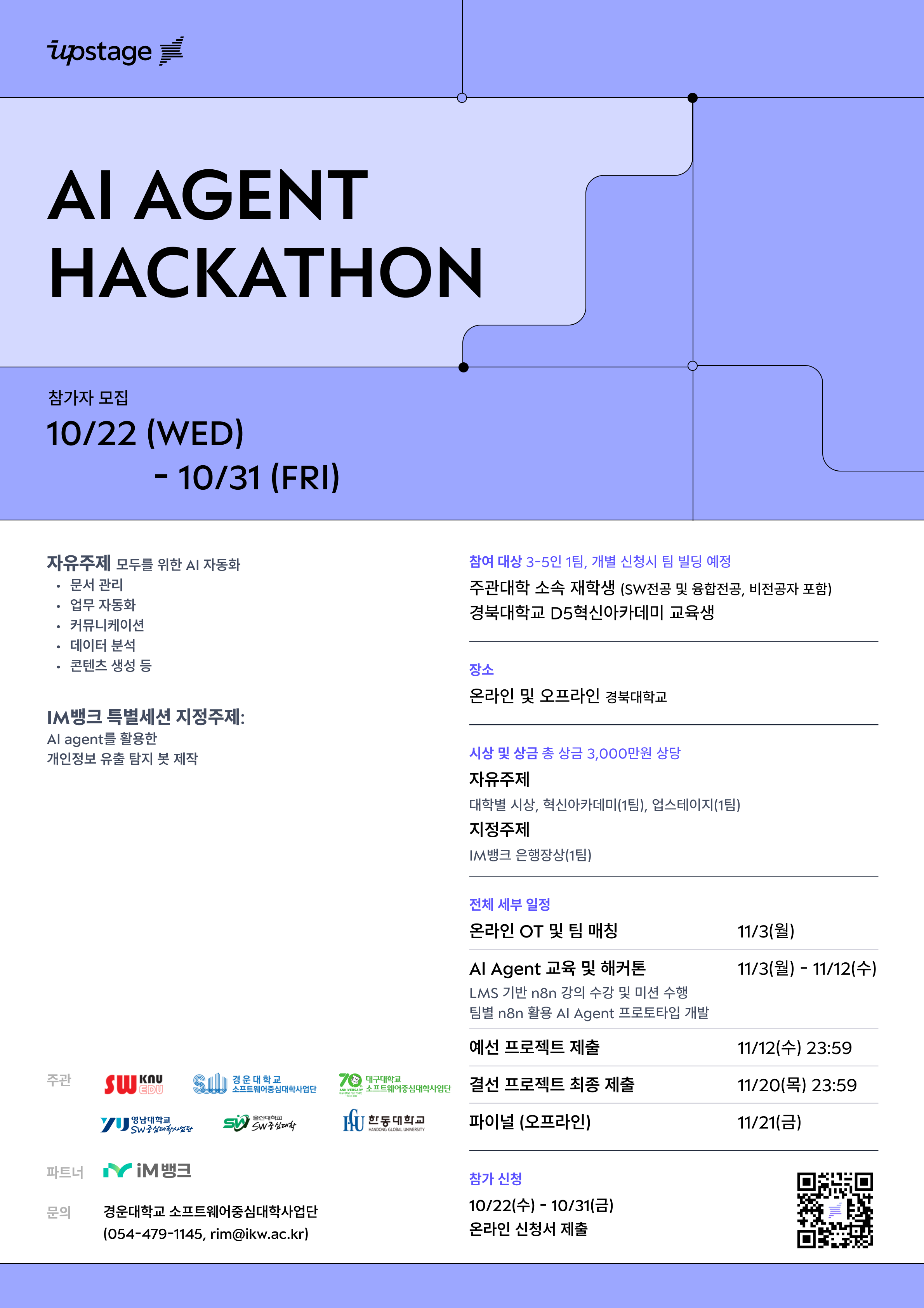 2025 대구·울산·경북권 대학 x Upstage AI Agent 해커톤 참가자 모집 안내
