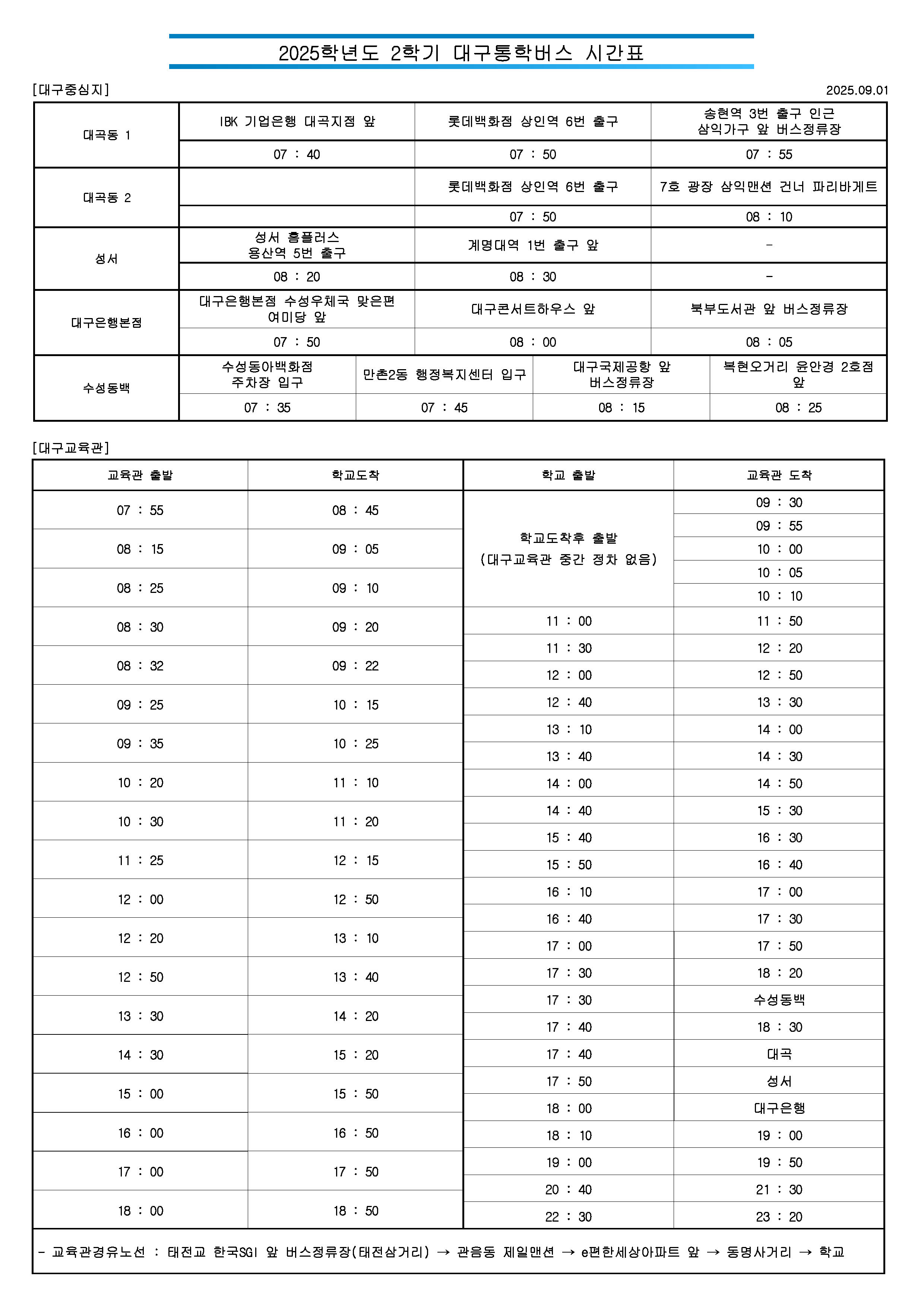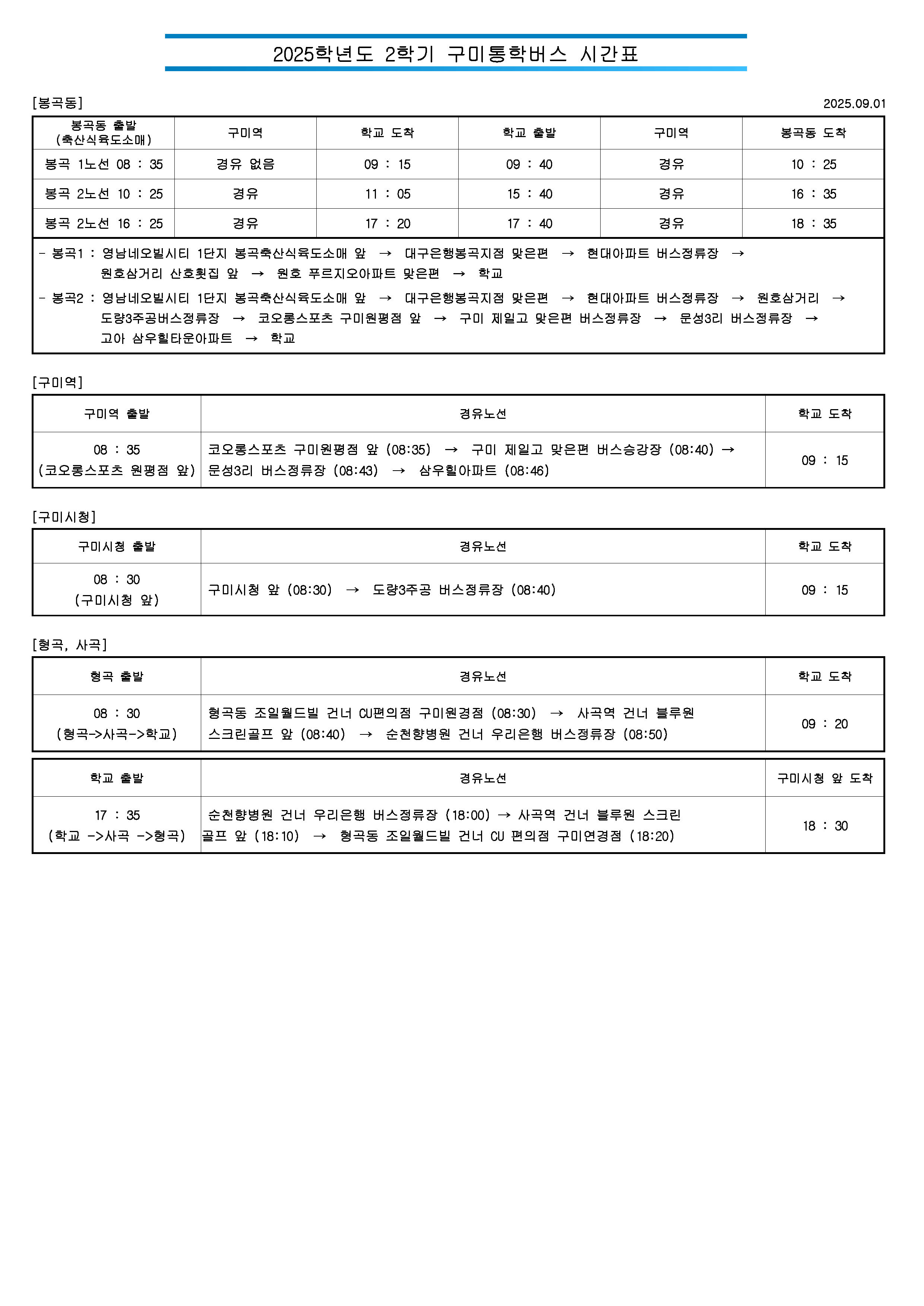 2025-2 통학버스 시간표 및 노선(사진) 안내 [25.09.01 ~ 별도 안내까지]