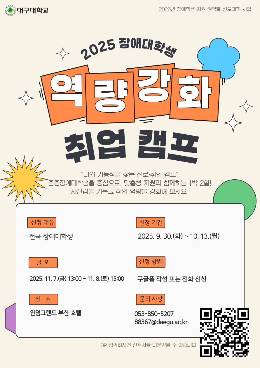 [대구대학교] 2025년 장애대학생 취업역량 강화 캠프 참여 안내