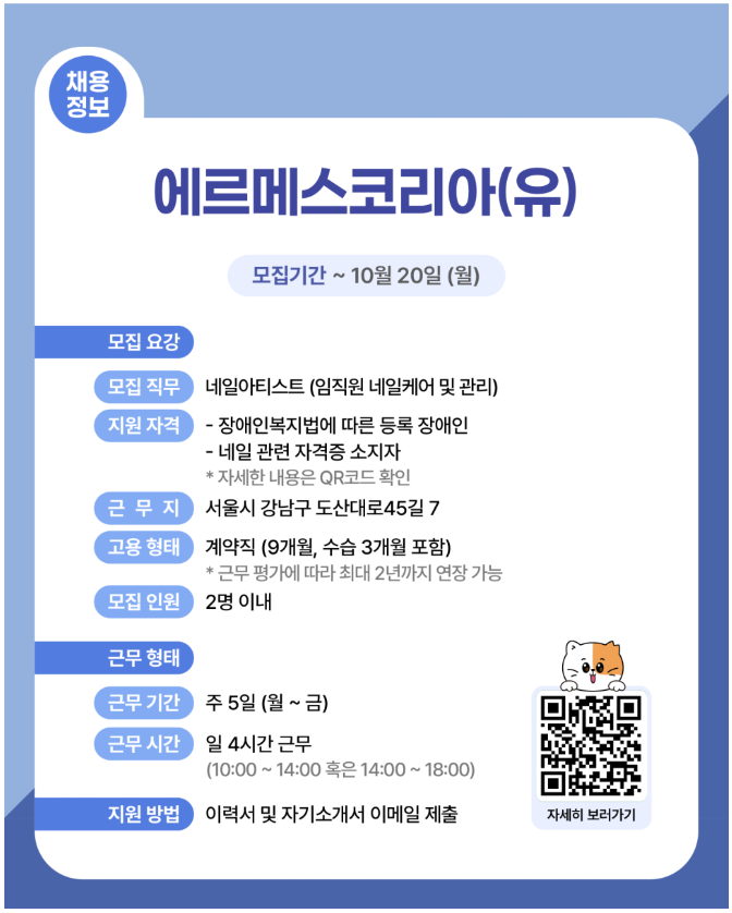 [채용정보] 에르메스코리아(유)ㅣ모집기간: 10월 20일(월)