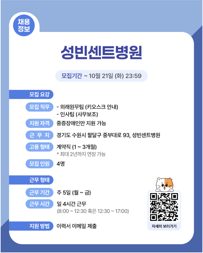 [채용정보] 성빈센트병원ㅣ모집기간: 10월 21일(화)