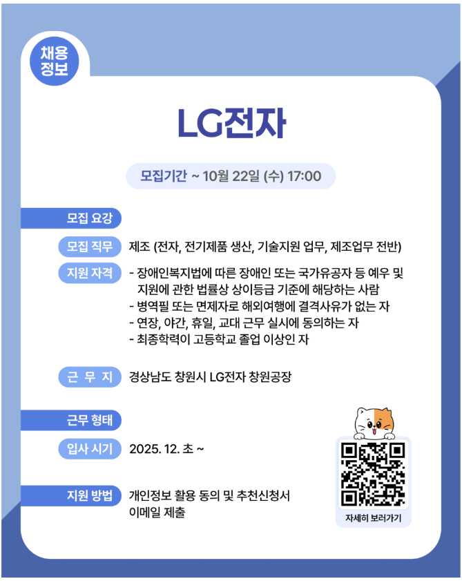[채용정보] LG전자ㅣ모집기간: 10월 22일(수) 17:00