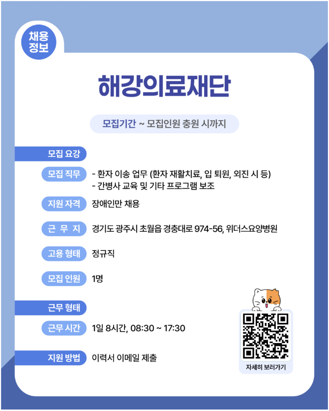 [채용정보] 해강의료재단ㅣ모집기간: 모집인원 충원 시까지