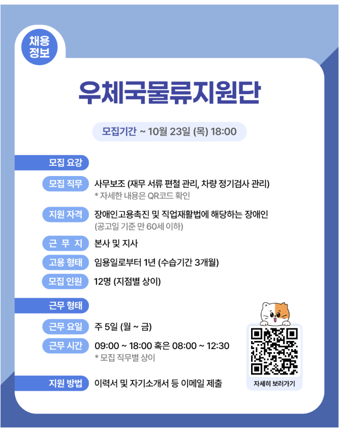 [채용정보] 우체국물류지원단ㅣ모집기간: 10월 23일(목)18:00
