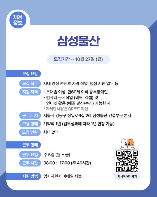 [채용정보] 삼성물산ㅣ모집기간: 10월 27일(월)