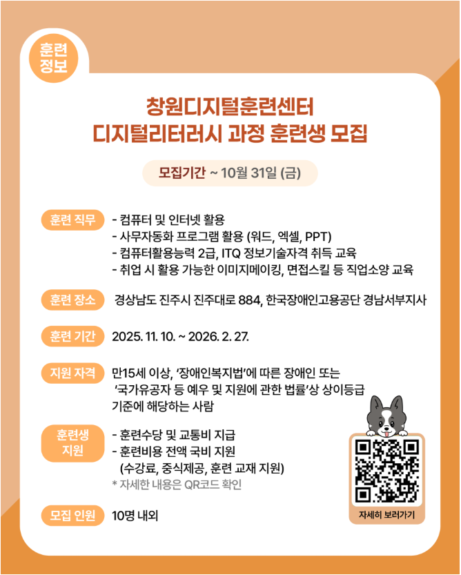 [훈련정보] 창원디지털훈련센터 디지털리터러시 과정 훈련생 모집ㅣ모집기간: 10월 31일(금)