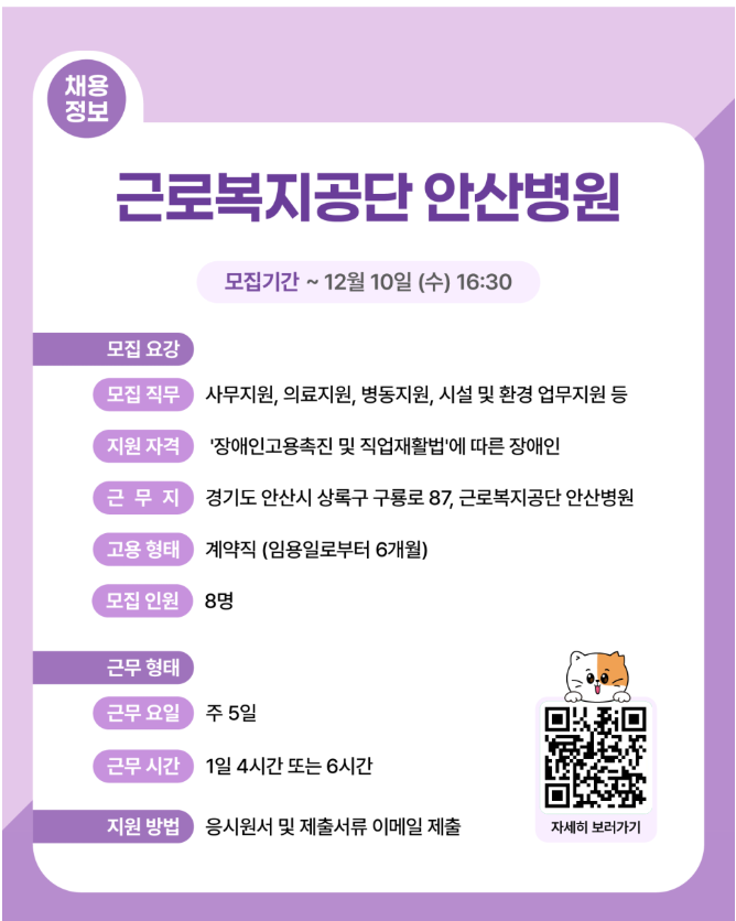 [채용정보] 근로복지공단 안산병원ㅣ모집기간: 12월 10일(수) 16:30