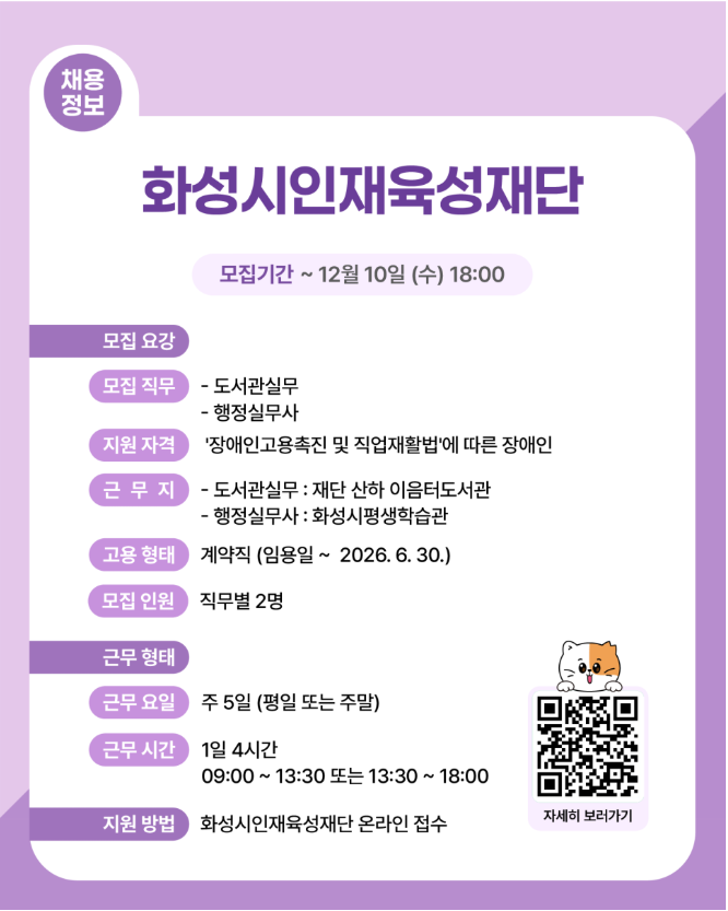 [채용정보] 화성시인재육성재단ㅣ모집기간? 12월 10일(수) 18:00