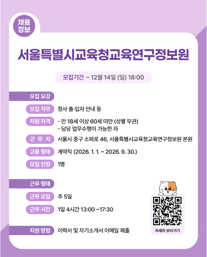 [채용정보] 서울특별시교육청교육연구정보원ㅣ모집기간: 12월 14일(일)18:00