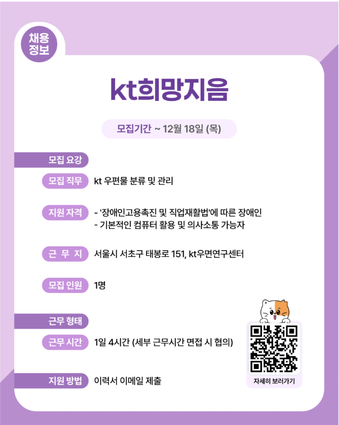 [채용정보] kt희망지음ㅣ모집기간: 12월 18일(목)