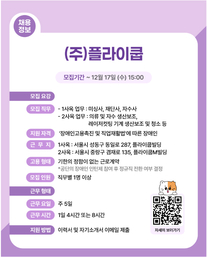 [채용정보] (주)플라이쿱ㅣ모집기간: 12월 17일(수)15:00