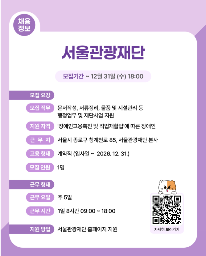 [채용정보] 서울관광재단ㅣ모집기간: 12월 31일(수)18:00
