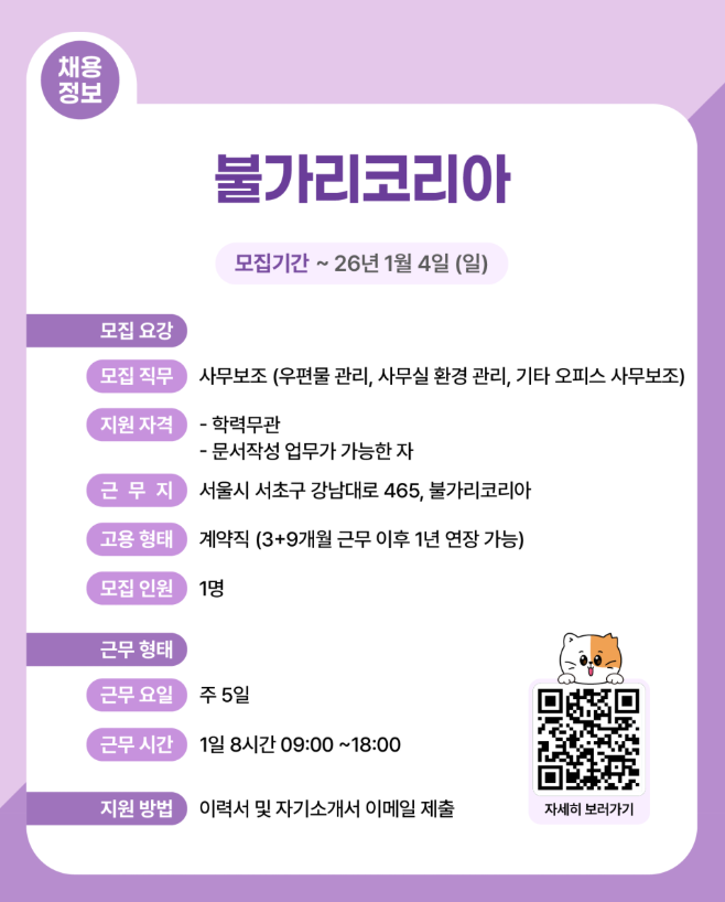 [채용정보] 불가리코리아ㅣ모집기간: 26년 1월 4일(일)