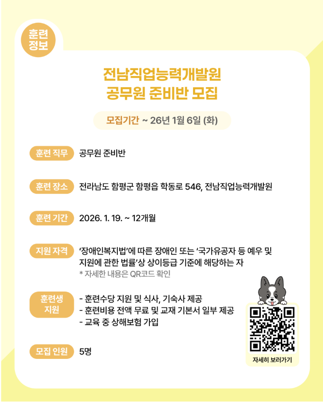[훈련정보] 전남직업능력개발원 공무원 준비반 모집ㅣ모집기간: 26년 1월 6일(화)