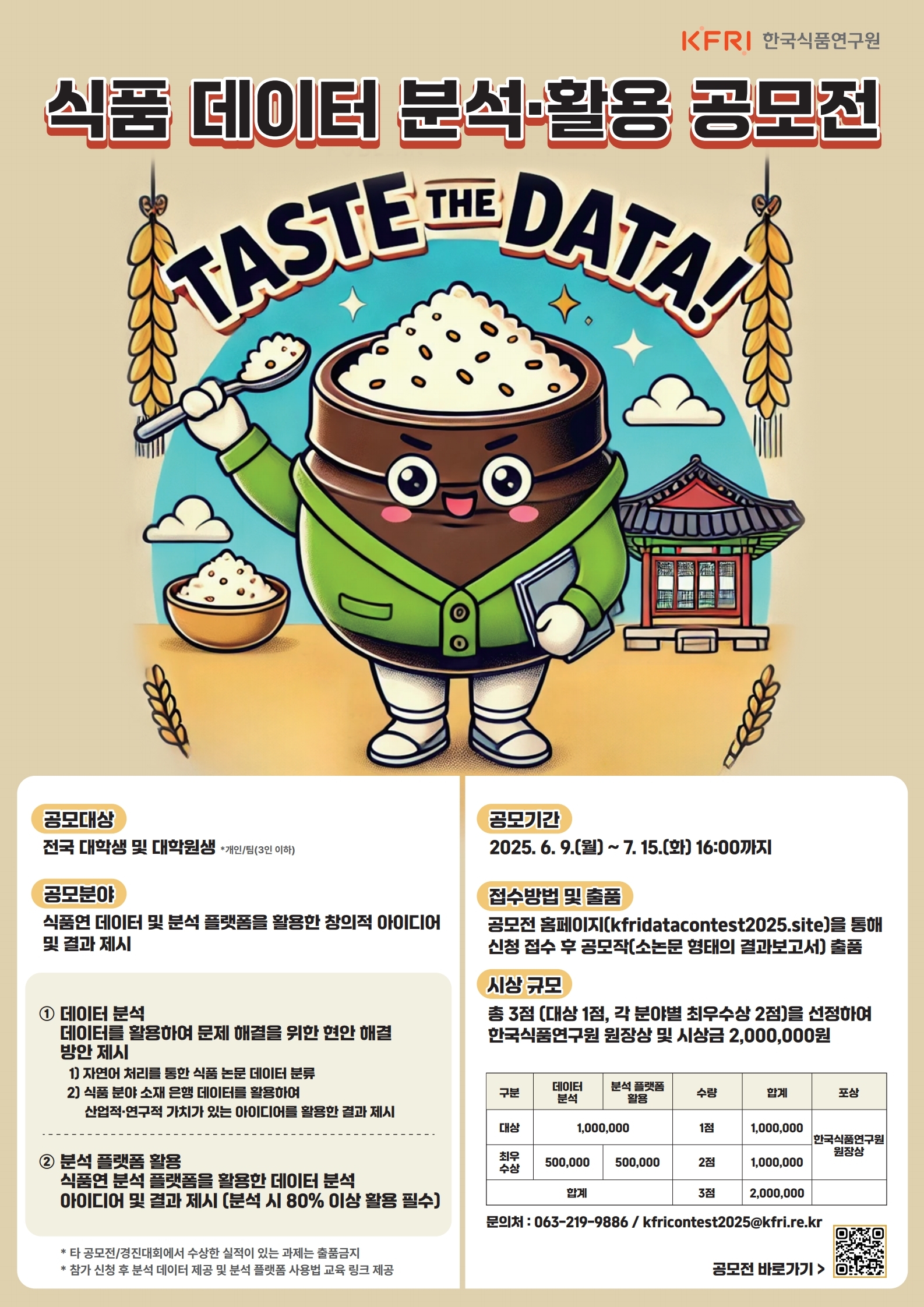 한국식품연구원 데이터 분석·활용 공모전 안내