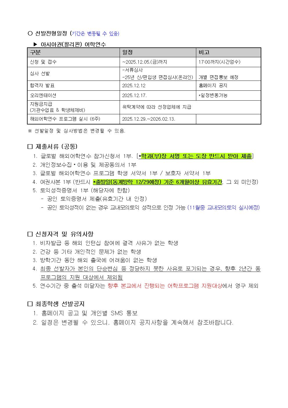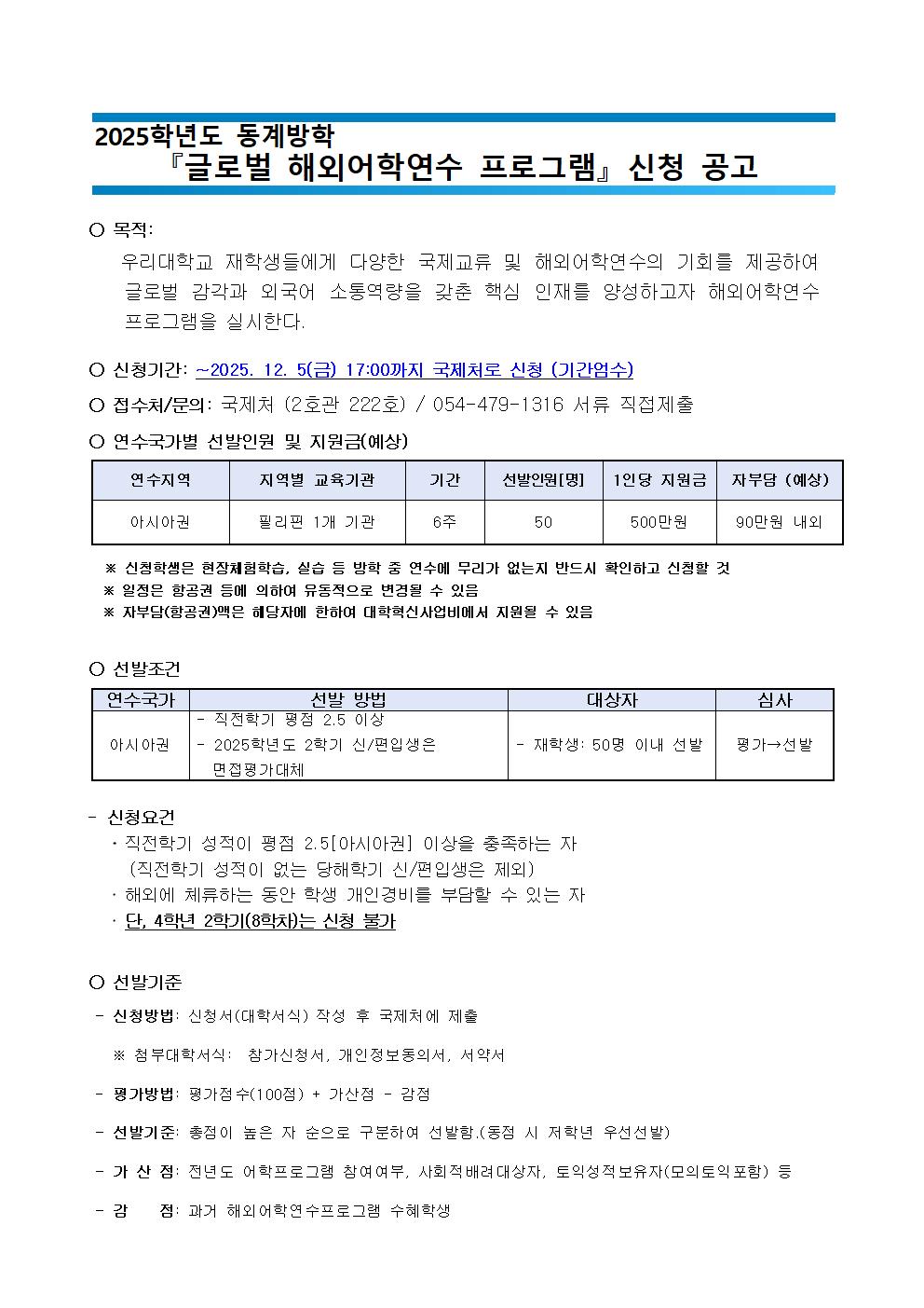 2025-동계방학 글로벌 해외어학연수 프로그램 신청공고