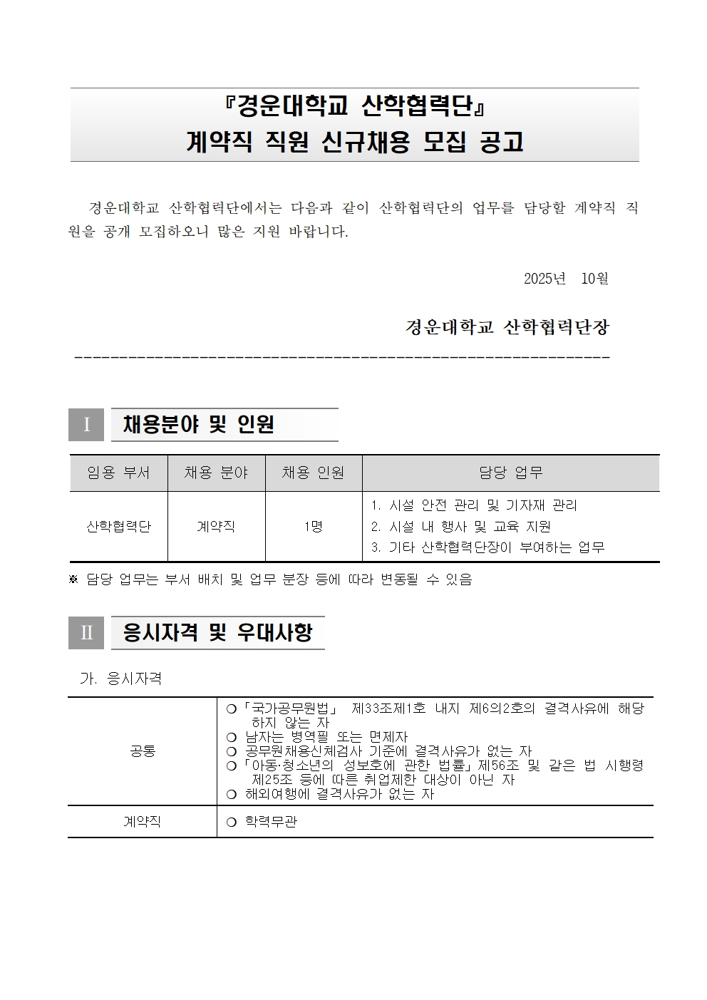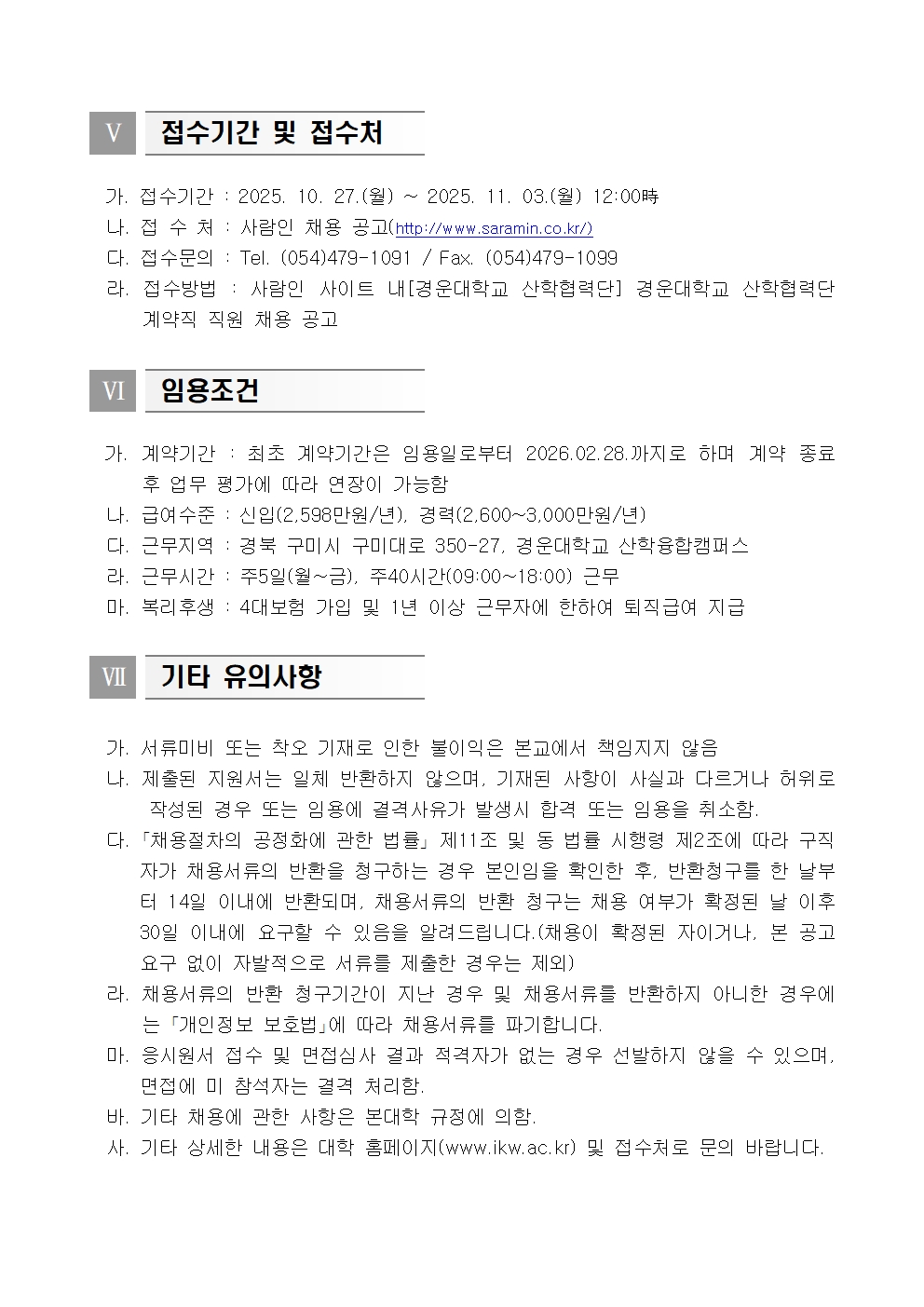 【채용공고】 경운대학교 산학협력단 산학융합캠퍼스 계약직원 채용공고(11/03까지)