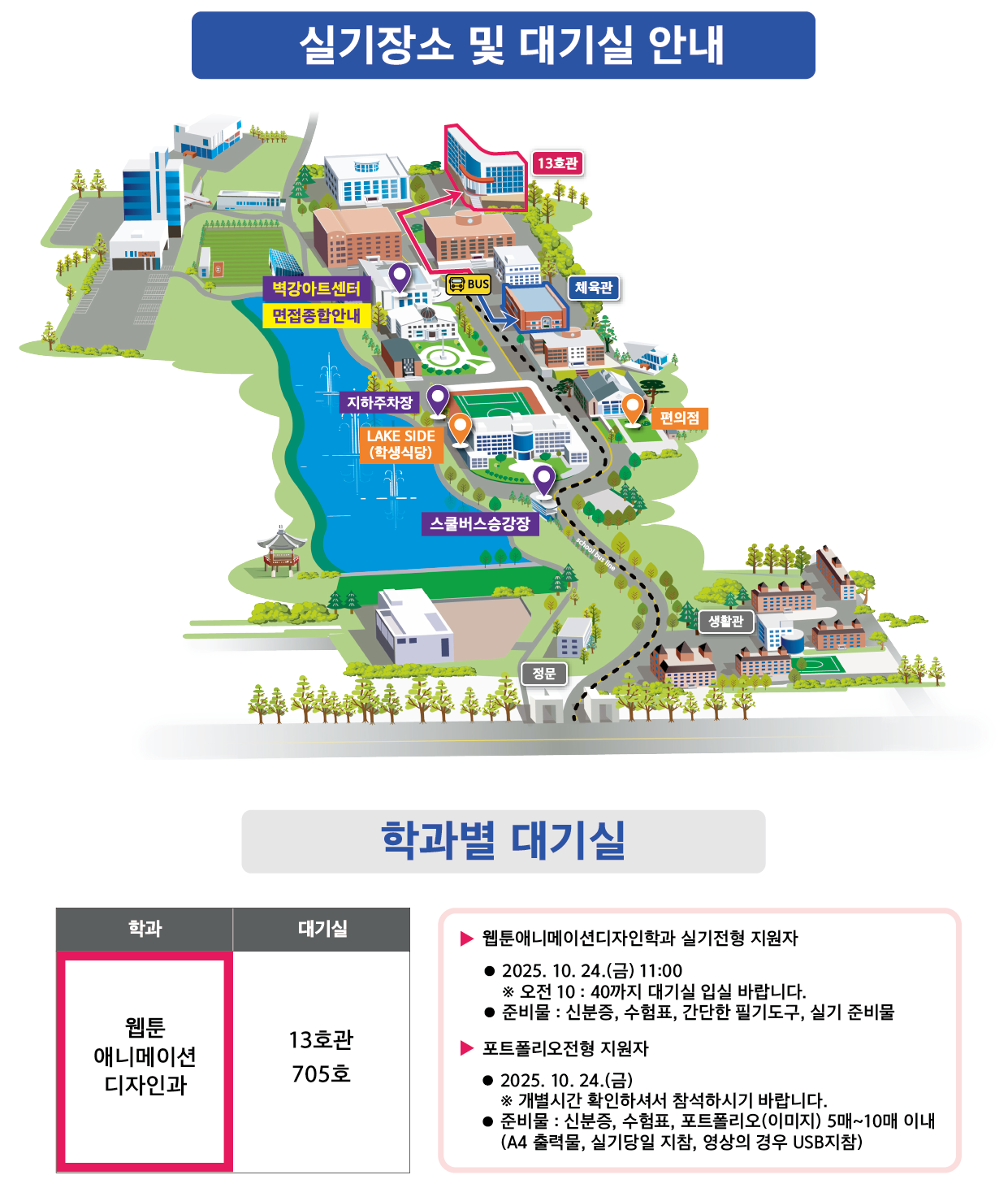 2026 수시모집 웹툰애니메이션디자인학과 실기위주(실기전형, 포트폴리오전형) 공고