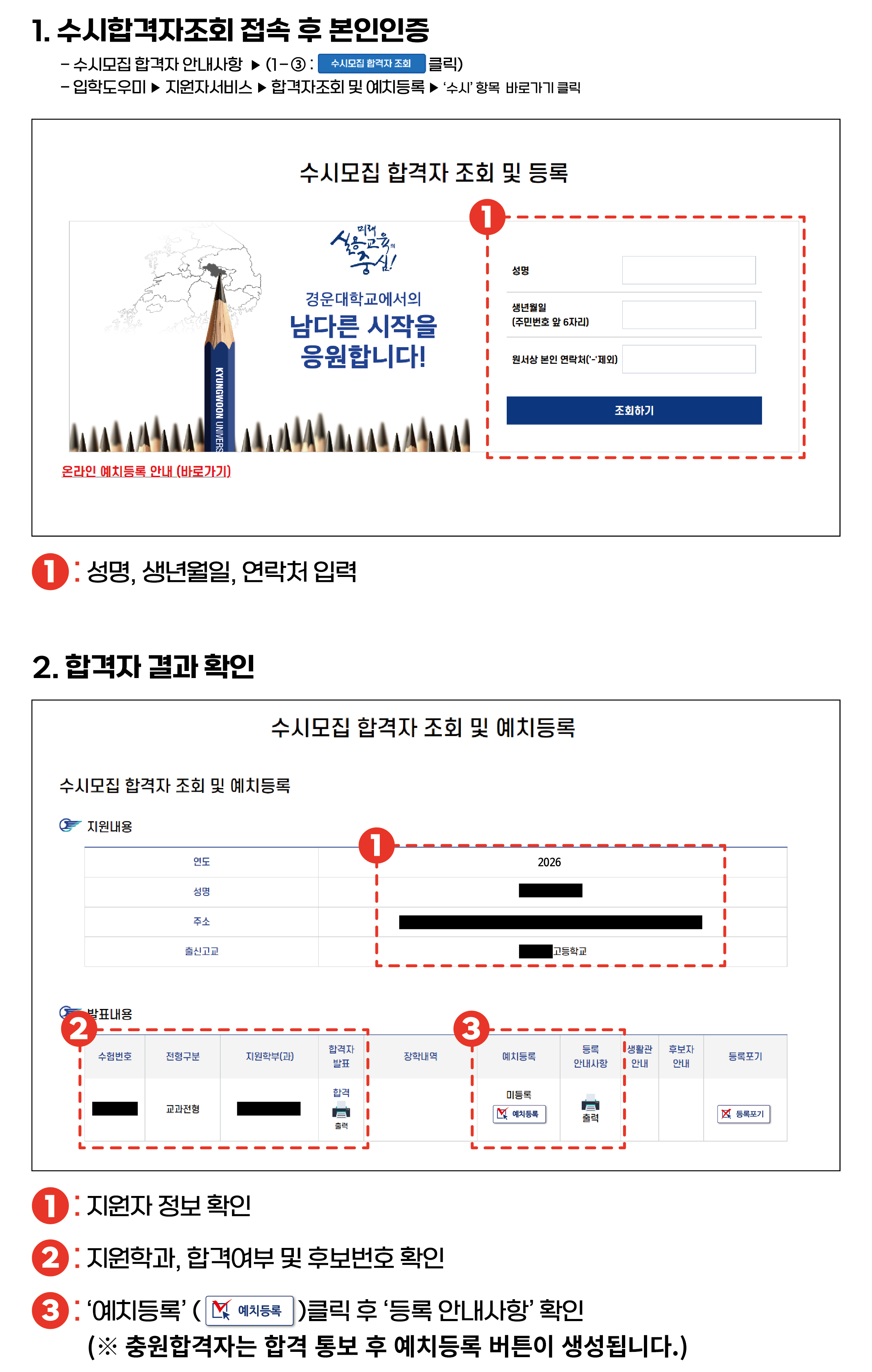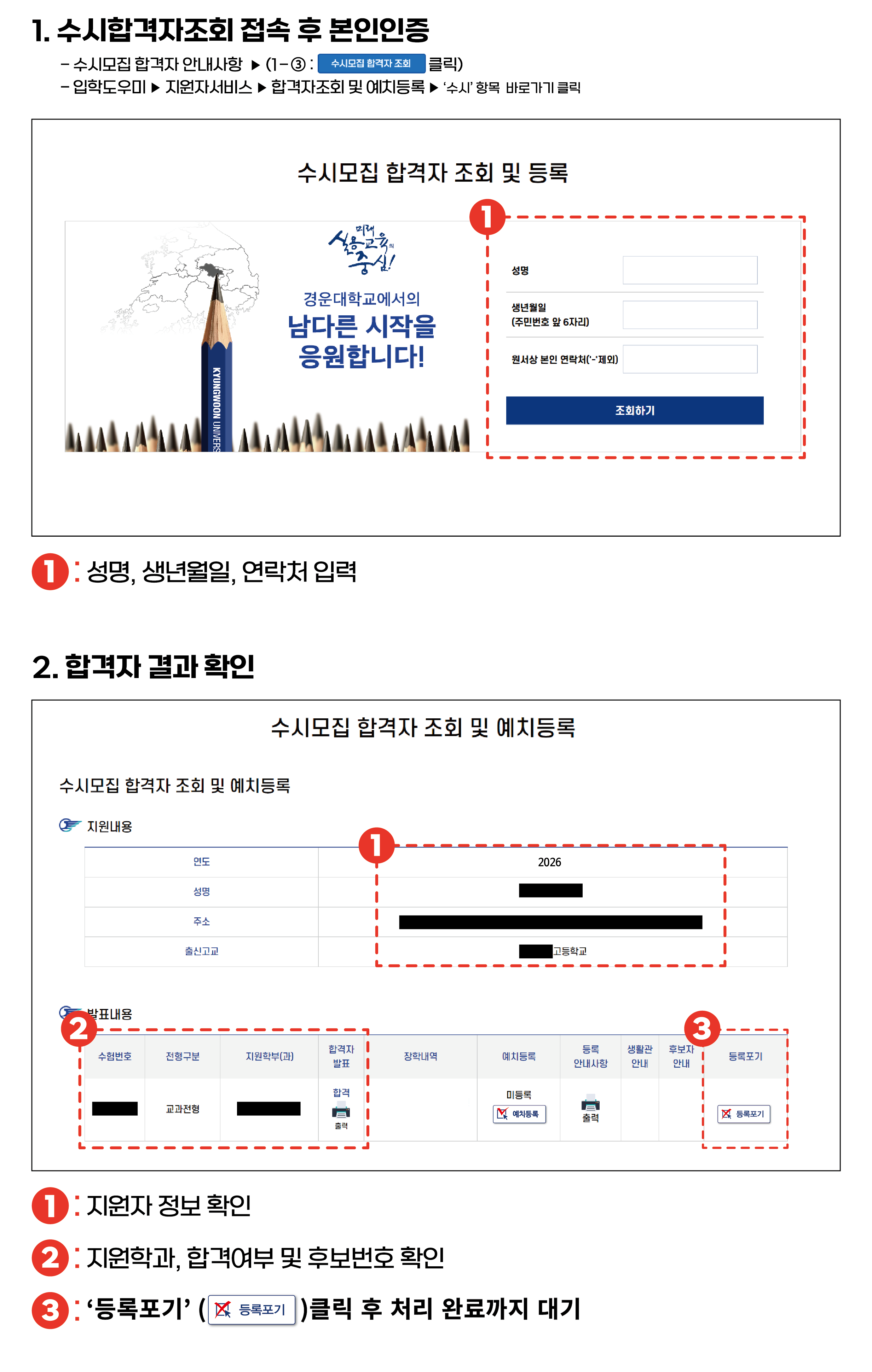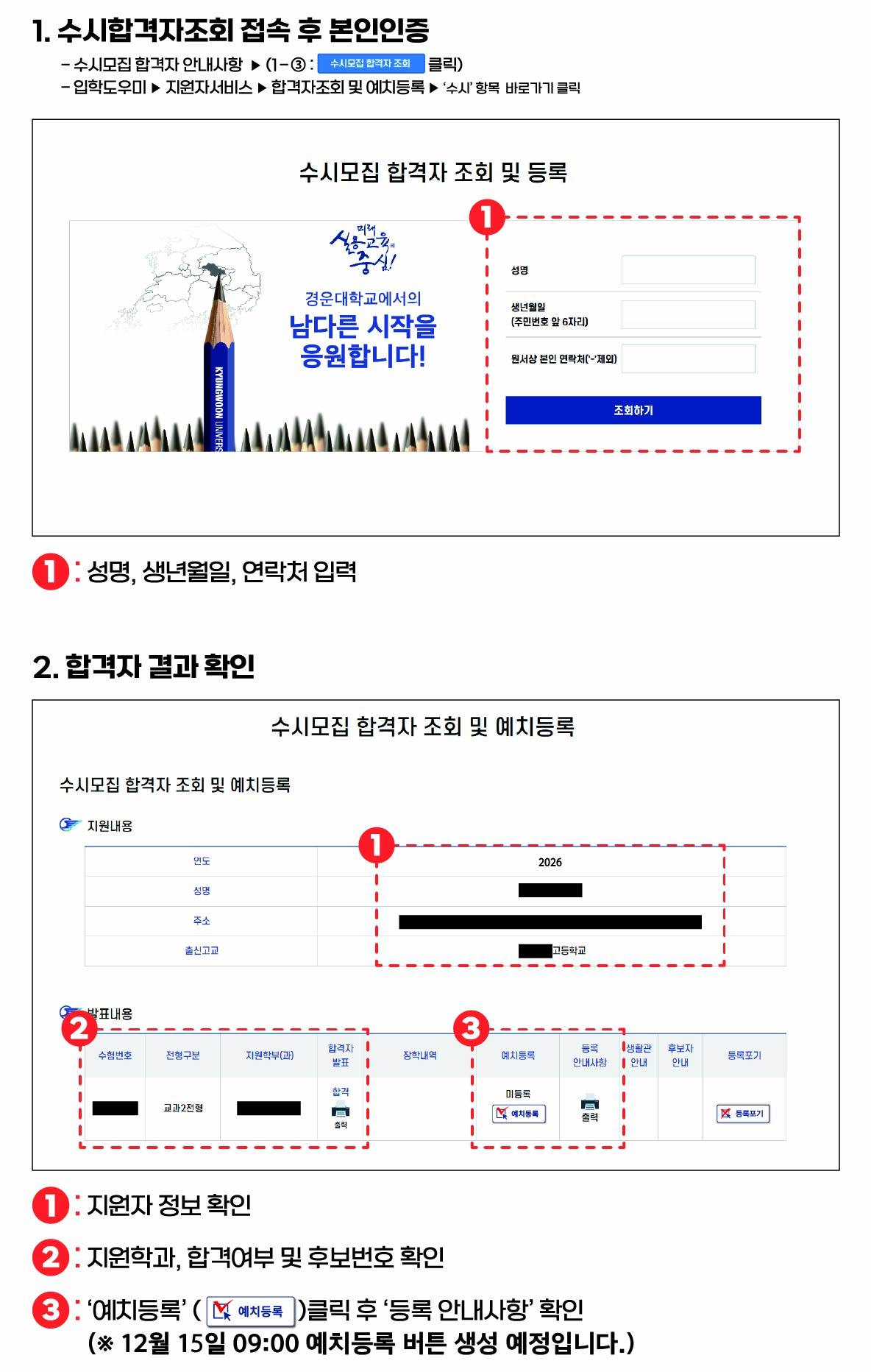 2026학년도 수시모집 합격자 조회 및 등록 안내
