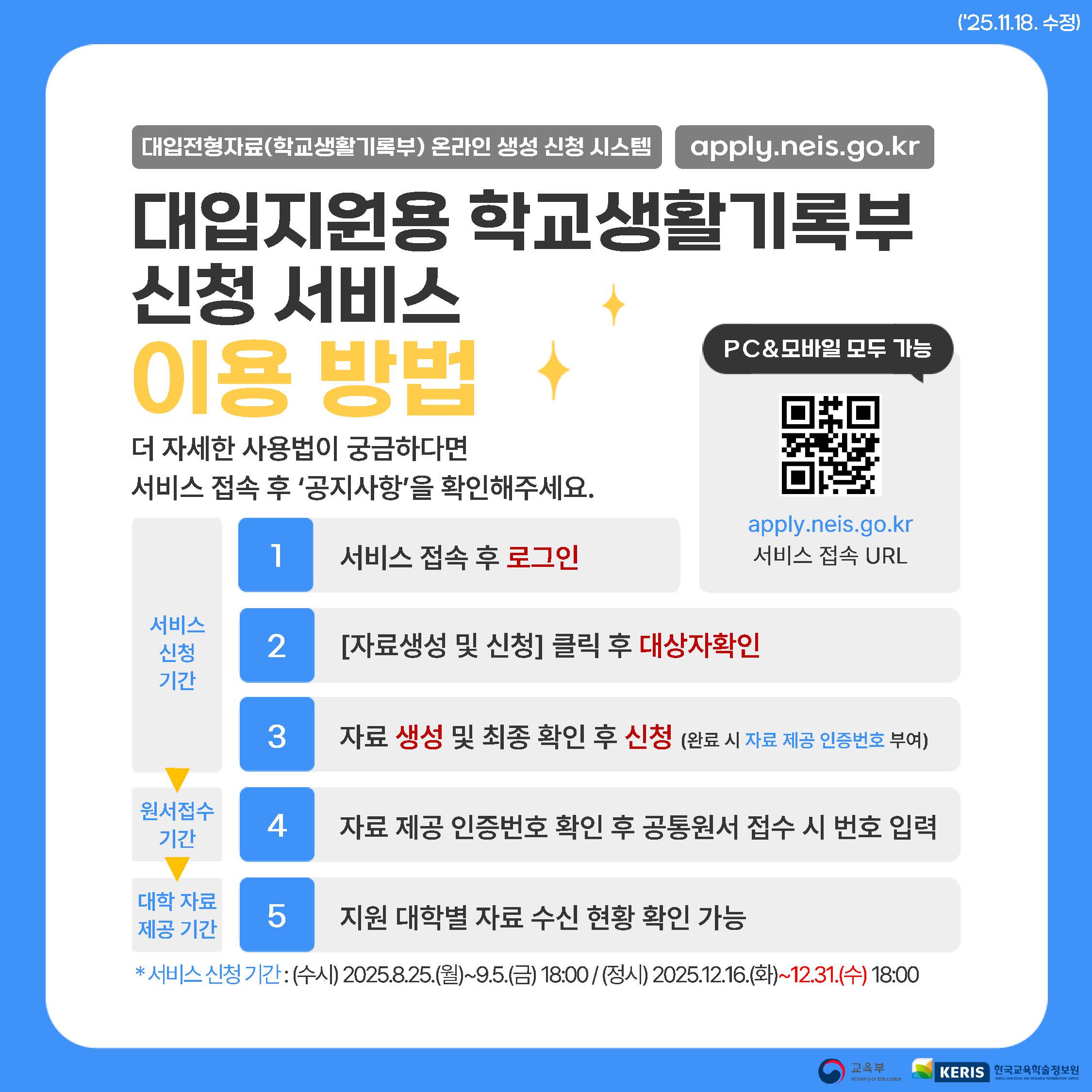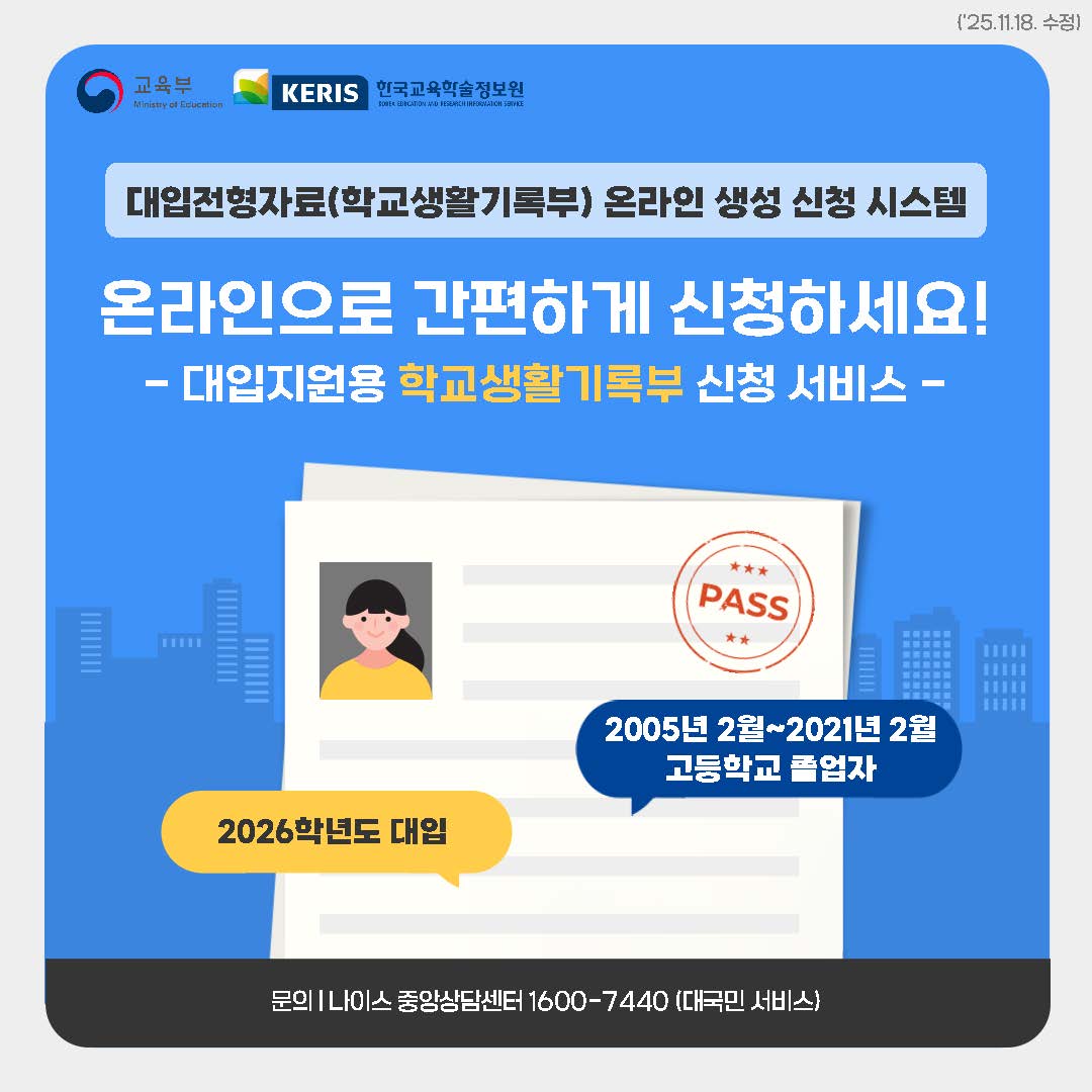 2026학년도 정시모집 [학교생활기록부] 온라인 생성 신청 안내