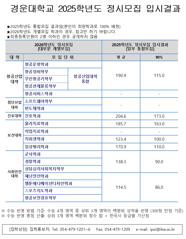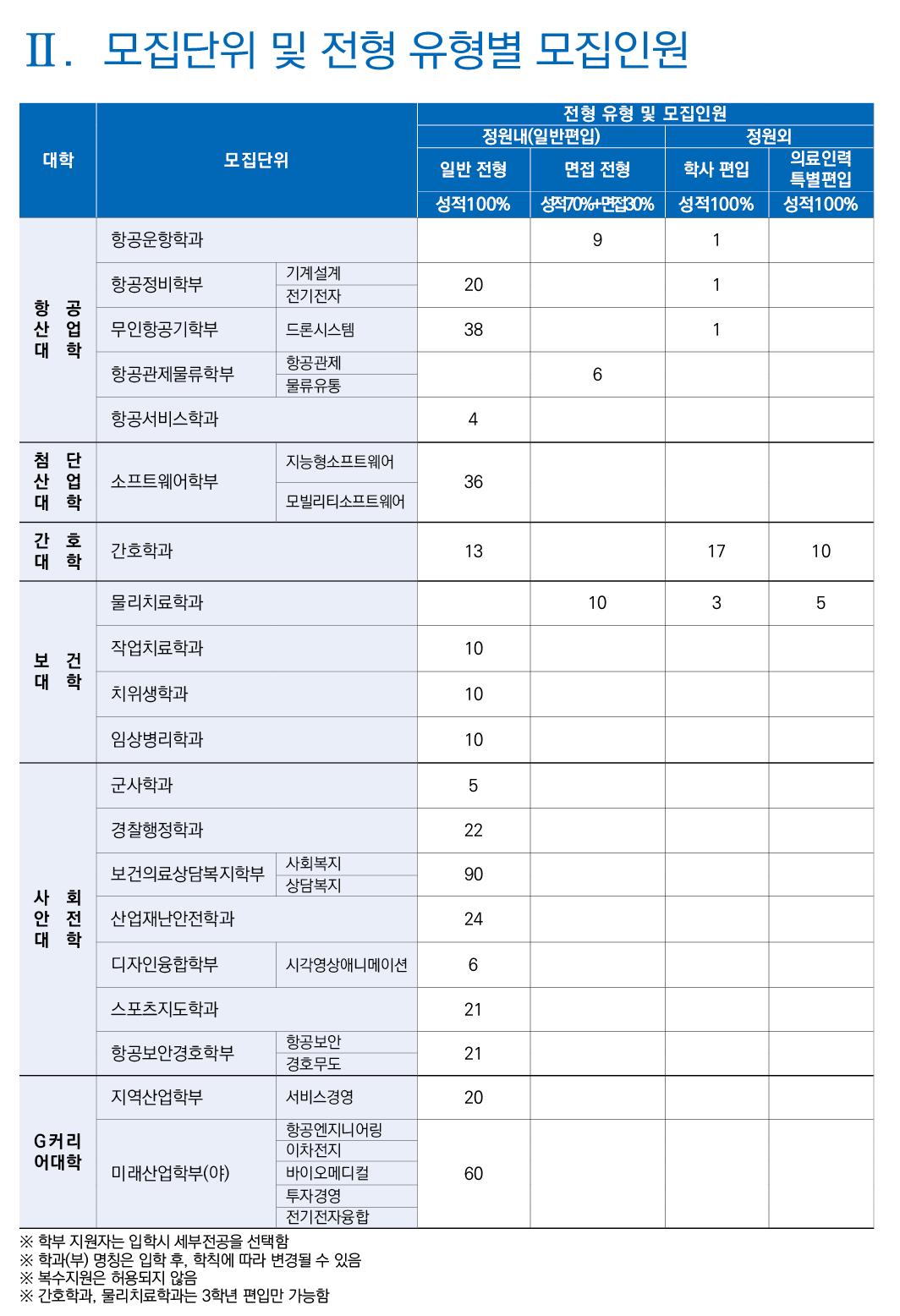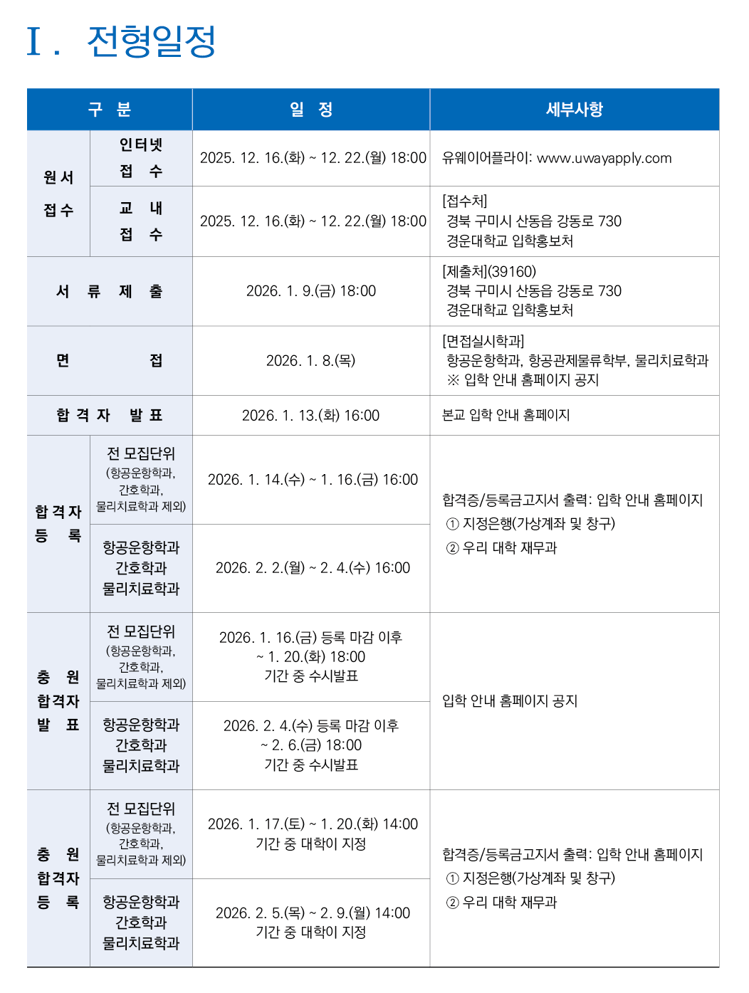 2026학년도 수시모집 항공운항학과 신체검사 서류제출(12.09마감) 및 신체검사 실시 병원 안내