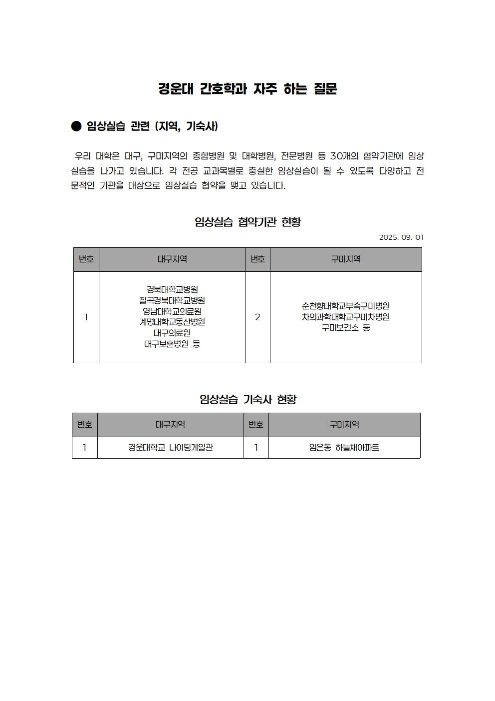 경운대 간호학과 자주하는 질문 [임상실습 관련]