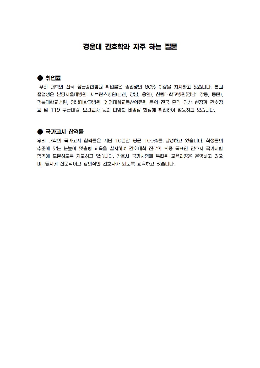 경운대 간호학과 자주하는 질문 [취업률 & 국가고시 합격률]